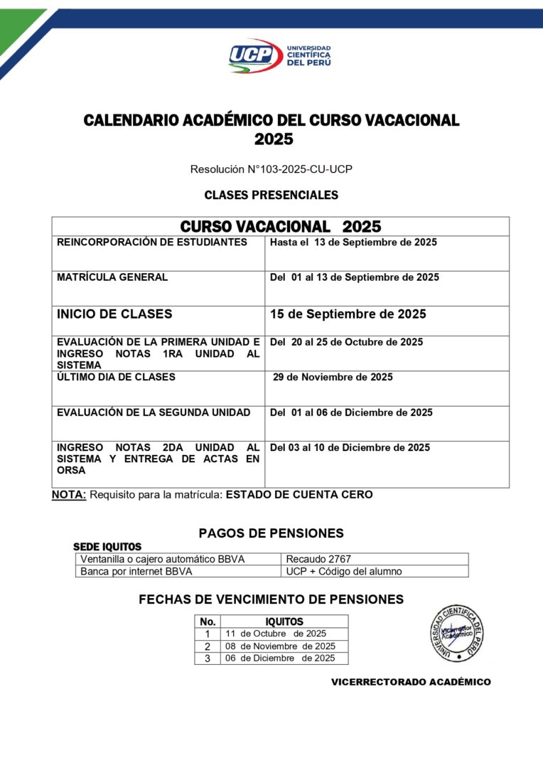 CALENDARIO ACADÉMICO – CURSO VACACIONAL 2025