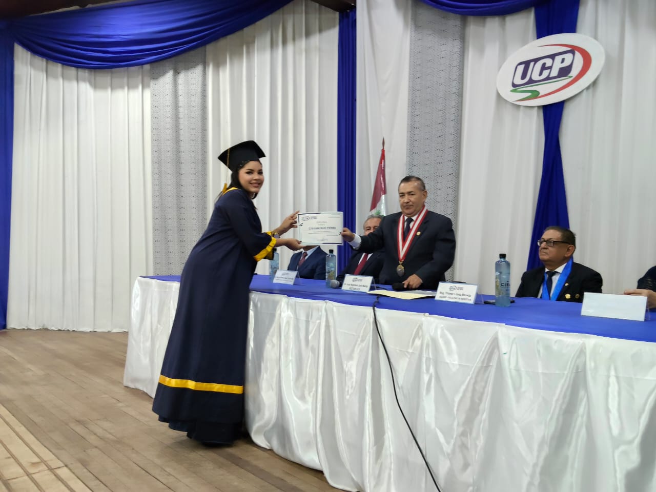 La ceremonia, se realizó en el auditorio de la UCP, el viernes 29 de agosto del presente año, a horas 6:00 pm, estuvo presidida por nuestro Rector el Dr. José Napoleón Jara Martel, Mag. Thamer López Macedo – Decano de la Facultad de Negocios y los docentes Dra. Ketty Alarcón Ramírez, Mag. Jorge Gonzáles Bardales y Mag. Guillermo Enrique Mogollón.