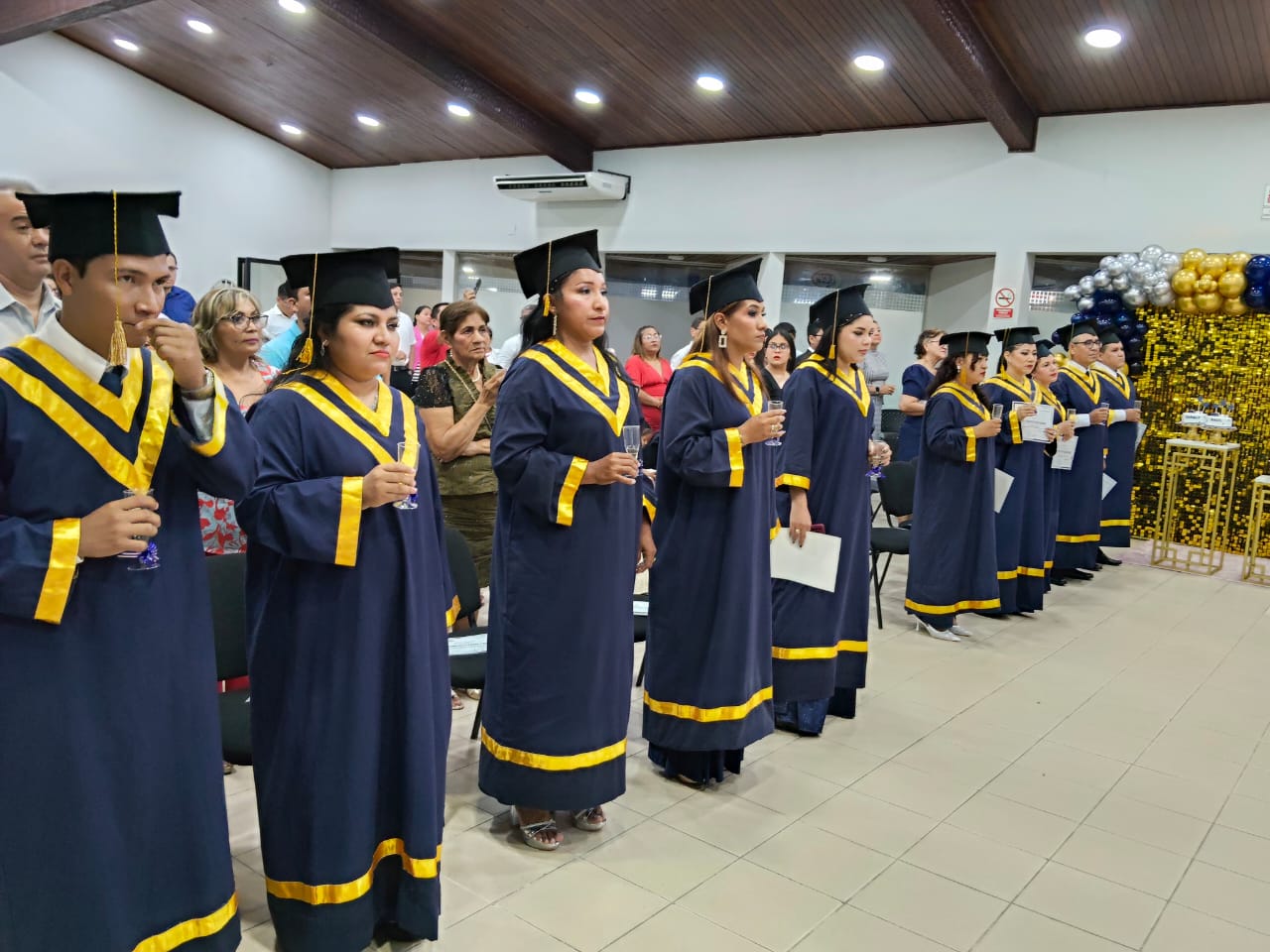 La ceremonia concluyó con un brindis y un espacio para que los graduados, familiares y amigos compartieran el momento especial.